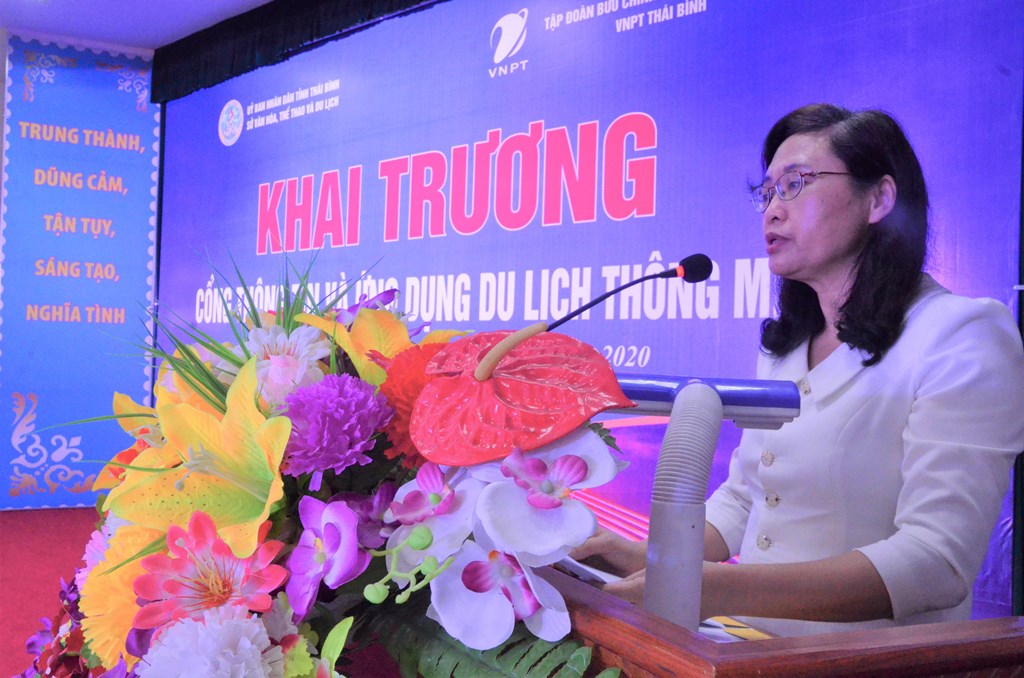 Phát biểu tại lễ khai mạc, đồng chí Nguyễn Thị Lĩnh, Tỉnh ủy viên, Phó Chủ tịch UBND tỉnh đã nêu khái quát những thế mạnh của tiềm năng du lịch Thái Bình. Trong đó, năm 2019, tổng lượng khách du lịch của địa phương ước đạt 817.000 lượt với tổng doanh thu ước đạt hơn 335 tỷ đồng, tăng 16,3% so với năm 2018. Thái Bình phấn đấu đến năm 2030 trở thành địa bàn trọng điểm về du lịch của các tỉnh đồng bằng sông Hồng. Đồng chí Phó Chủ tịch UBND tỉnh khẳng định để góp phần phát triển du lịch trở thành nền kinh tế mũi nhọn, việc xây dựng cổng thông tin và ứng dụng du lịch thông minh tỉnh Thái Bình nhằm truyền tải thông tin đến du khách trong và ngoài nước, đồng thời đây cũng là kênh hữu ích để xử lý kịp thời các thông tin phản ánh của khách du lịch đến các cơ quan có thẩm quyền về du lịch. Đây là một trong những bước đi cụ thể trong lộ trình số hóa và kinh doanh dịch vụ nội dung số trên các nền tảng công nghệ thông minh. Đồng chí Phó Chủ tịch UBND tỉnh đề nghị Sở Văn hóa, Thể thao và Du lịch, đơn vị được giao quản lý, vận hành và khai thác cổng thông tin và ứng dụng du lịch thông minh tiếp tục phối hợp chặt chẽ với VNPT Thái Bình và các sở, ban, ngành có liên quan lắng nghe phản hồi từ nhiều phía để từng bước hoàn thiện, phát triển và nâng cao chất lượng phục vụ thông tin, đáp ứng yêu cầu ngày càng cao của du khách, doanh nghiệp và người dùng; bảo đảm dịch vụ, thông tin đầy đủ, kịp thời, chất lượng, an toàn, văn minh, góp phần phát triển du lịch tỉnh Thái Bình. Bên cạnh đó, đồng chí cũng yêu cầu Sở Thông tin và Truyền thông chủ trì, phối hợp với các cơ quan truyền thông trong và ngoài tỉnh tăng cường tuyên truyền, quảng bá, thu hút các tổ chức, cá nhân tham gia sử dụng cổng thông tin và ứng dụng du lịch thông minh; các doanh nghiệp kinh doanh trong lĩnh vực du lịch tăng cường cung cấp thông tin, hình ảnh về sản phẩm, dịch vụ, đồng thời phối hợp trả lời các phản ánh của khách hàng về chất lượng, giá cả sản phẩm và dịch vụ mà đơn vị cung cấp,…