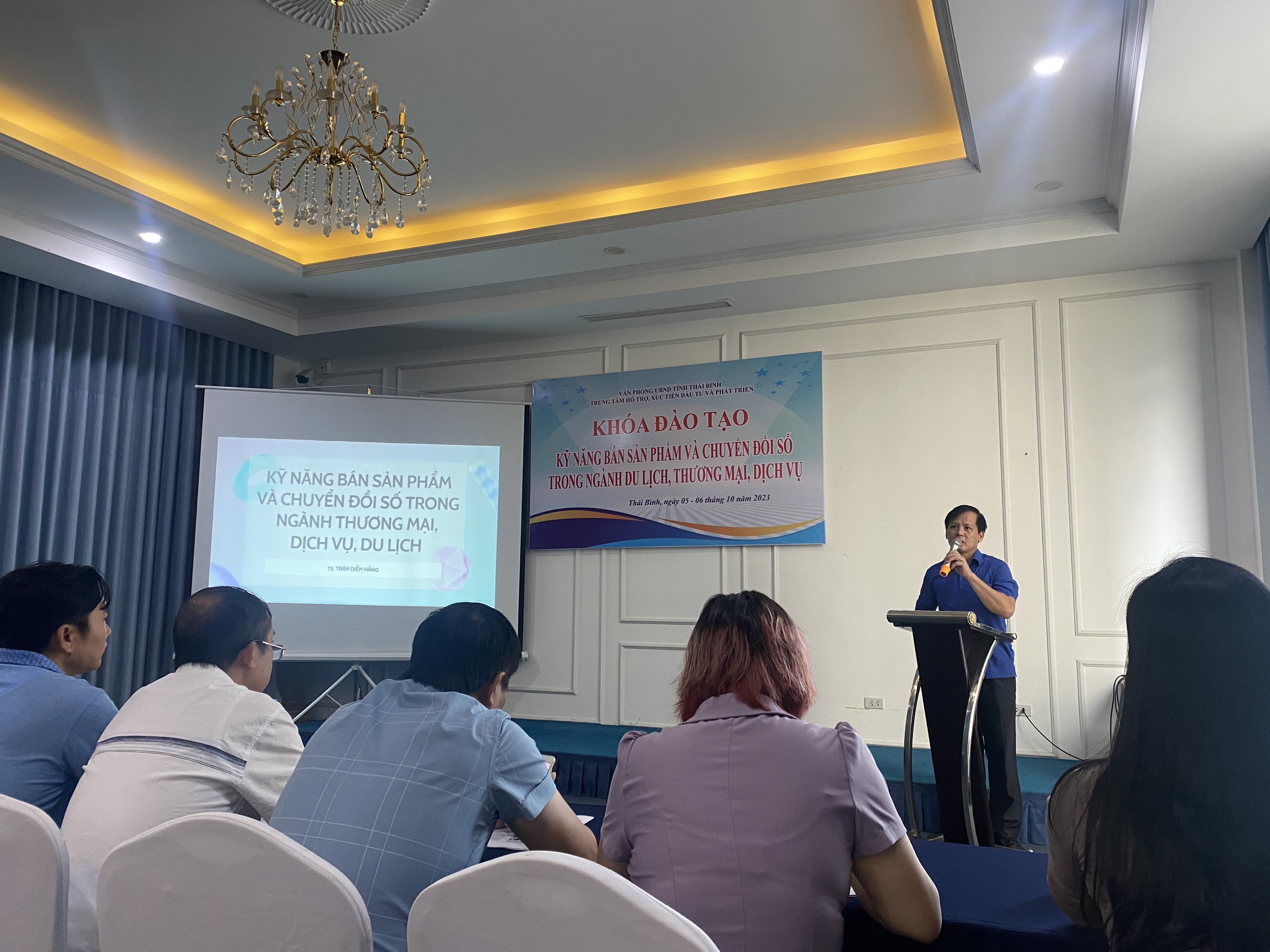 Khoá đào tạo diễn ra trong 2 ngày 5-6/10/2023 do giảng viên tiến sỹ Trần Diễm Hằng Trưởng khoa Du lịch trường Đại học Hoà Bình truyền đạt các kiến thức về kỹ năng bán sản phẩm và chuyển đổi số trong ngành du lịch, thương mại, dịch vụ. Chương trình cung cấp các kiến thức cơ bản về chuyển đổi số, kinh nghiệm đưa sản phẩm thương mại dịch vụ du lịch đến với khách hàng từ các bước cơ bản nhất như xây dựng thương hiệu, thiết kế logo, quảng cáo sản phẩm đến đối tượng thị trường khách mục tiêu, bán sản phẩm mà khách hàng cần; ứng dụng công nghệ chuyển đổi số 4.0, bán hàng trên các sàn thương mại điện tử.