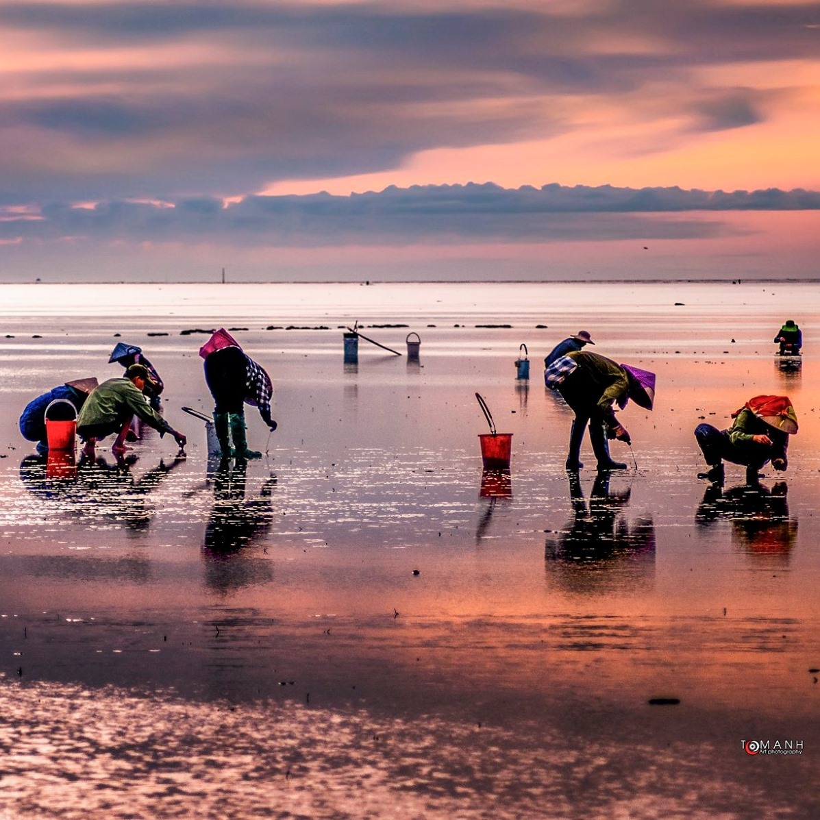 Khi thủy triều xuống, mặt nước trên bãi cát pha lẫn phù sa ngang tầm mắt cá chân trải dài mênh mông, trông như một tấm gương khổng lồ, phản chiếu tạo nên một bức tranh đẹp lung linh, kỳ lạ...Cùng chiêm ngưỡng vẻ đẹp của biển vô cực: