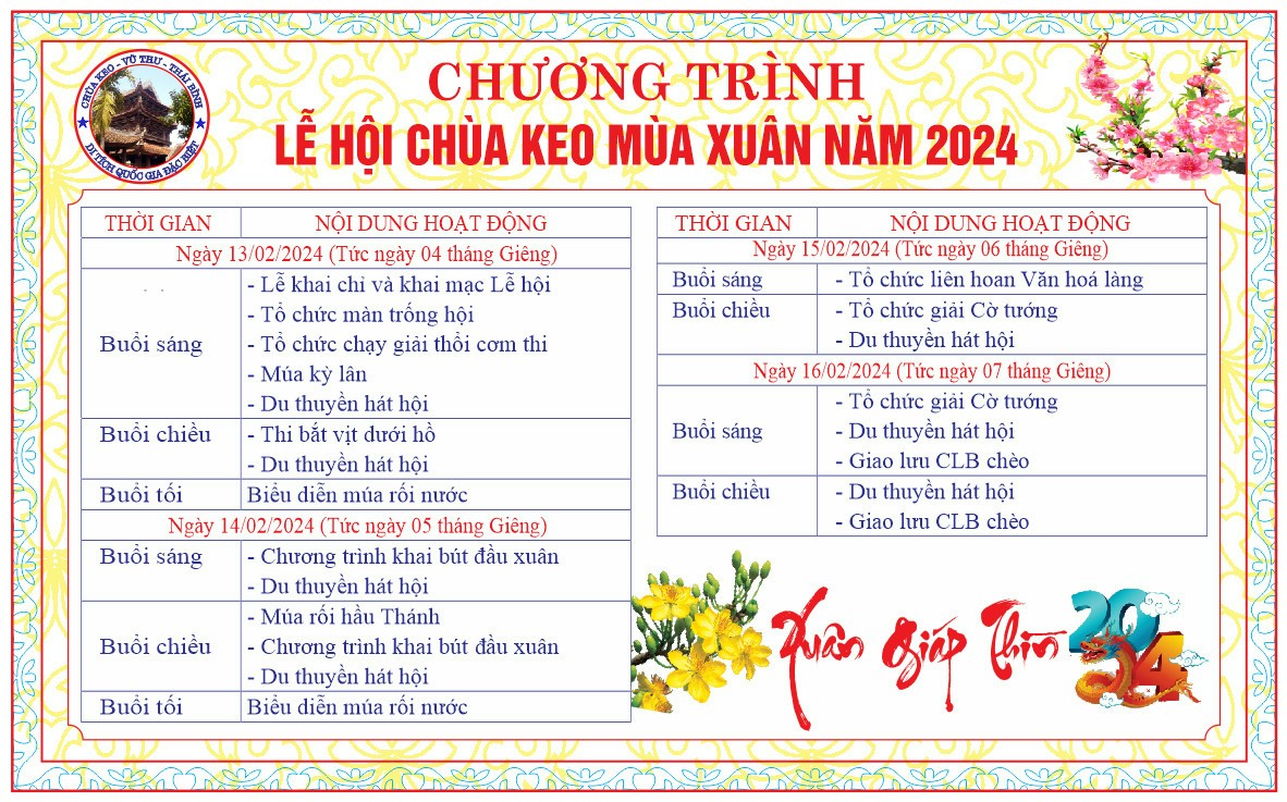 Chương trình Lễ hội Xuân chùa Keo năm Giáp Thìn 2024