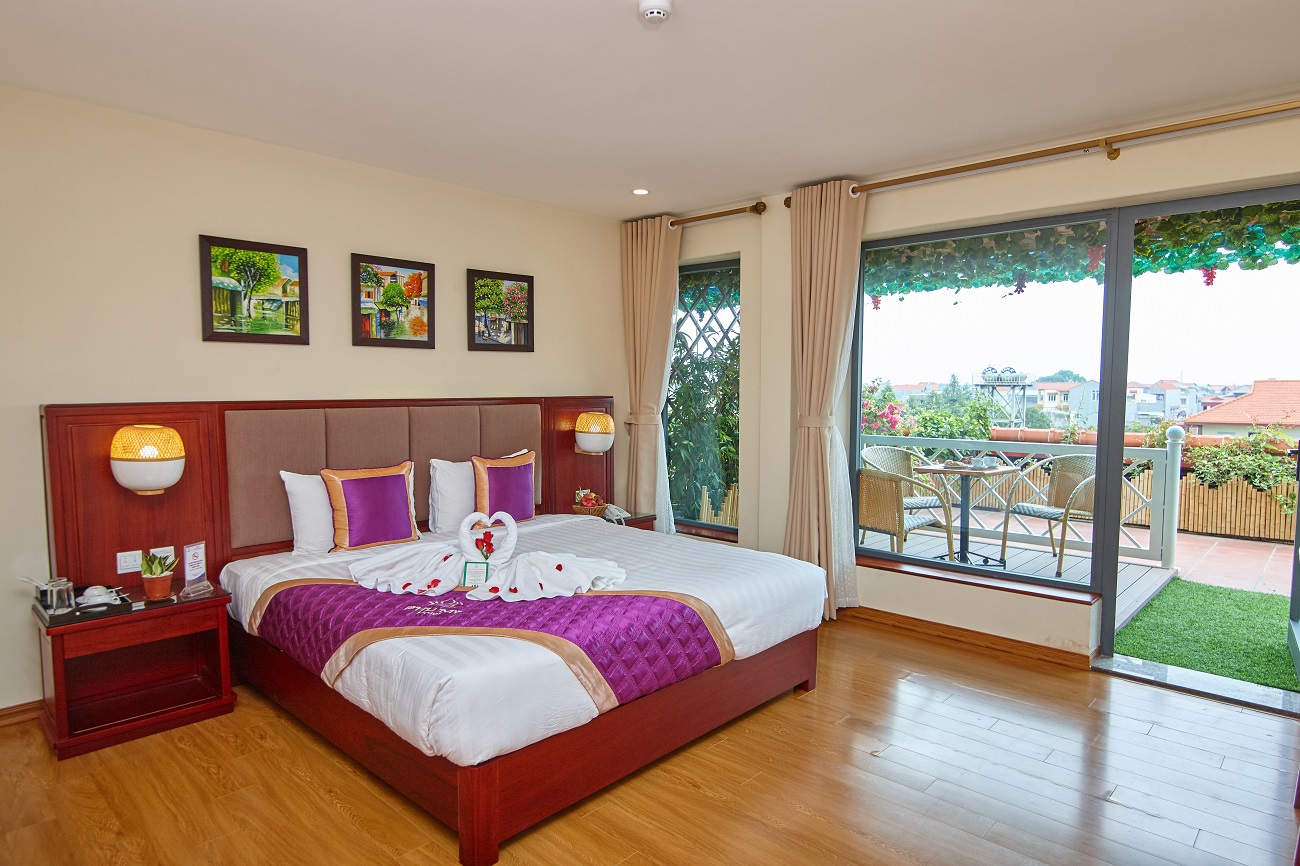 Dịch vụ lưu trú với nội thất được làm bằng chất liệu gỗ tự nhiên và thiết kế sang trọng đạt tiêu chuẩn Deluxe trong hệ thống khách sạn