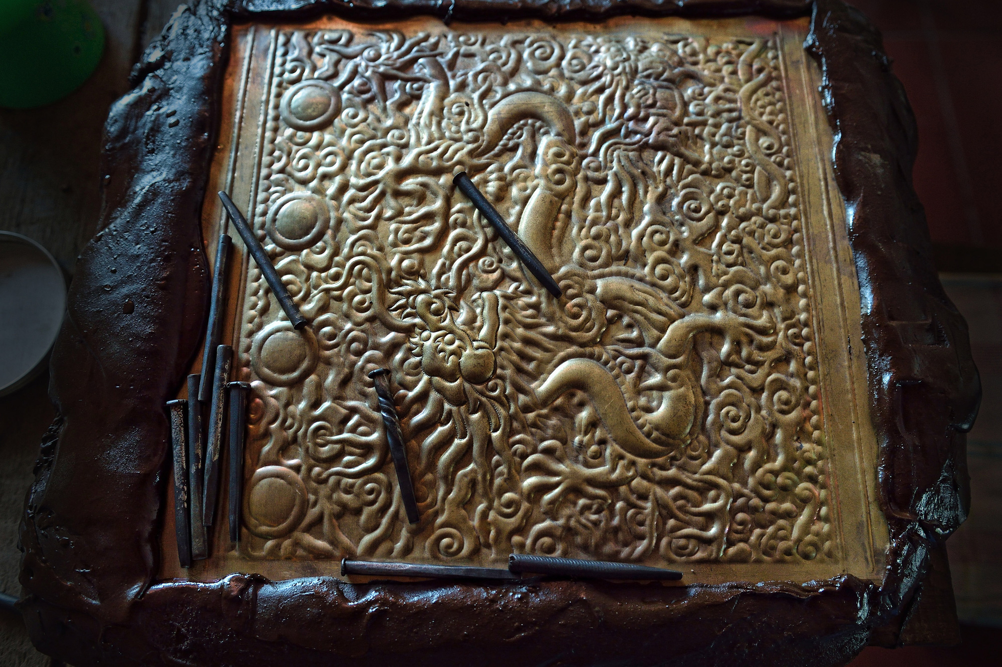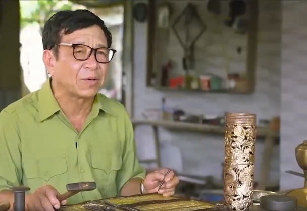 Hình ảnh: Ông Thắng - quyết tâm phục hồi và phát triển nghề chạm bạc của ông cha để lại.