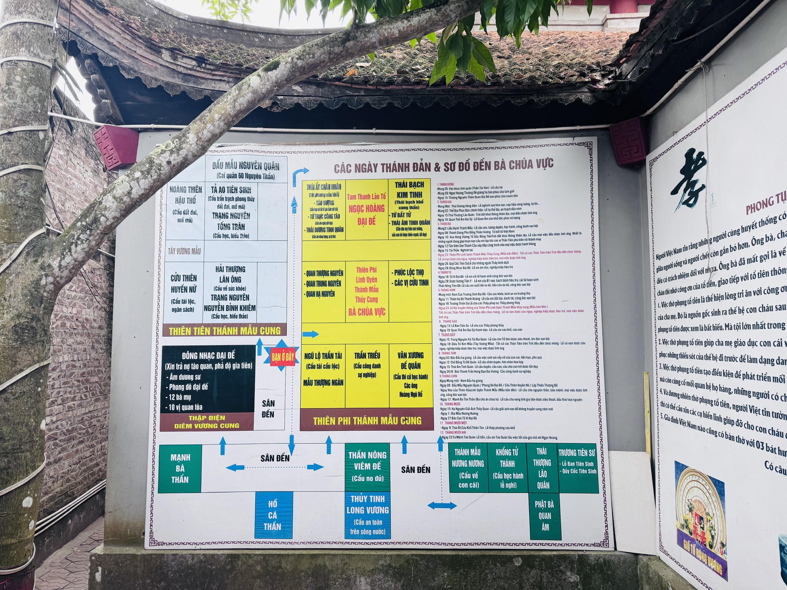 Đền chia làm 3 khu vực chính: khu đền chính, Tiên Thiên Thánh Mẫu Cung, Đông Nhạc Cung.