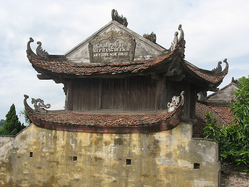 Chùa được xây dựng từ thời Hậu Lê và theo hệ phái Bắc Tông. Chùa đã được trùng tu nhiều lần và gần lần đây nhất là vào năm 1991. Bước chân vào thăm chùa, đầu tiên du khách sẽ đi qua tam quan - cổng phía ngoài chùa. Nhìn bên ngoài tam quan như 3 kiến trúc riêng biệt với ba cửa. Cửa giữa cao to, được xây hai tầng, mặt bằng hình vuông. Tầng trên và tầng dưới bằng nhau. Trên nóc tầng hai lợp ngói mũi hài với bốn đầu đao tỏa ra bốn hướng. Hai bên tả hữu là hai cửa nhỏ đối xứng. Ngay sau hai cửa nhỏ này là các bậc dẫn lên tầng hai của cửa giữa. Đi qua tam quan là tiền đường (Thượng điện). Nhìn bên ngoài, tiền đường được xây dựng theo kiểu chồng diêm với hai gác chuông và trống ở nóc mái nhà. Chuông chùa (Đại hồng chung) được đúc vào thời vua Minh Mạng. Vào bên trong, du khách sẽ thấy tiền đường gồm năm gian với không gian rộng và thoáng. Bốn hàng cột lim đều đặn được phân bổ ở giữa tiền đường. Trên xà ngang trung tâm tiền đường được bài trí một của võng chạm nổi hình lưỡng long chầu nguyệt và được sơn son thếp vàng. Giáp tường phía trong đặt 6 pho tượng là tượng Khuyến Thiện, tượng Trừng Ác, tượng hai thánh Tăng, tượng hai Thị Giả. Những bức tượng này làm tăng thêm vẻ uy linh của tiền đường. Bên cạnh đó chùa có nhiều pho tượng cổ bằng gỗ hoặc đất nung phủ sơn, như tượng Chuẩn Đề, tượng Địa Tạng (cao 1,08m); bộ tượng Thập Điện Minh Vương (cao 0,90m), tượng Cấp Cô Độc (cao 1,07m).