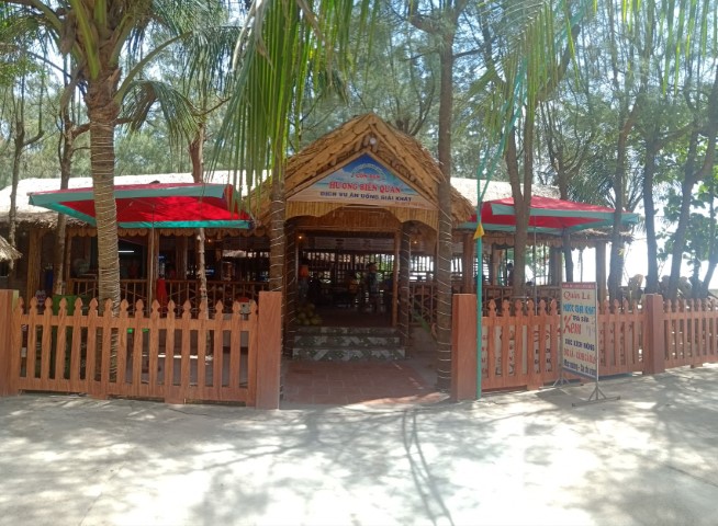 ắc chắn làm hài lòng mọi thực khách. Bên trái là khu vực trải nghiệm dân gian của Khu du lịch, view hướng biển Cồn Đen kết hợp sẽ là trải nghiệm tuyệt với cho tất cả du khách, đặc biệt là những khách hàng đi theo đoàn hoặc theo gia đình. Lá Cọ luôn mang đến cho thực khách những thực đơn với các món