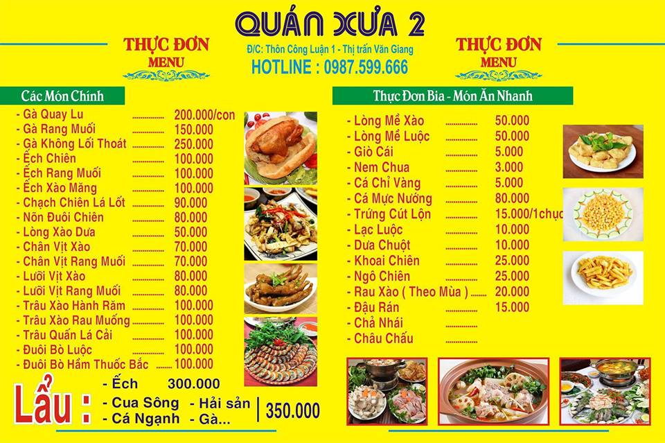 Quán xưa 2, nằm tại TT. Văn Giang, Nổi tiếng Ẩm thực đồng quê, Địa chỉ lý tưởng tổ chức ăn nhậu, hội họp, sinh nhật...tại quê hương Văn Giang, Hưng Yên